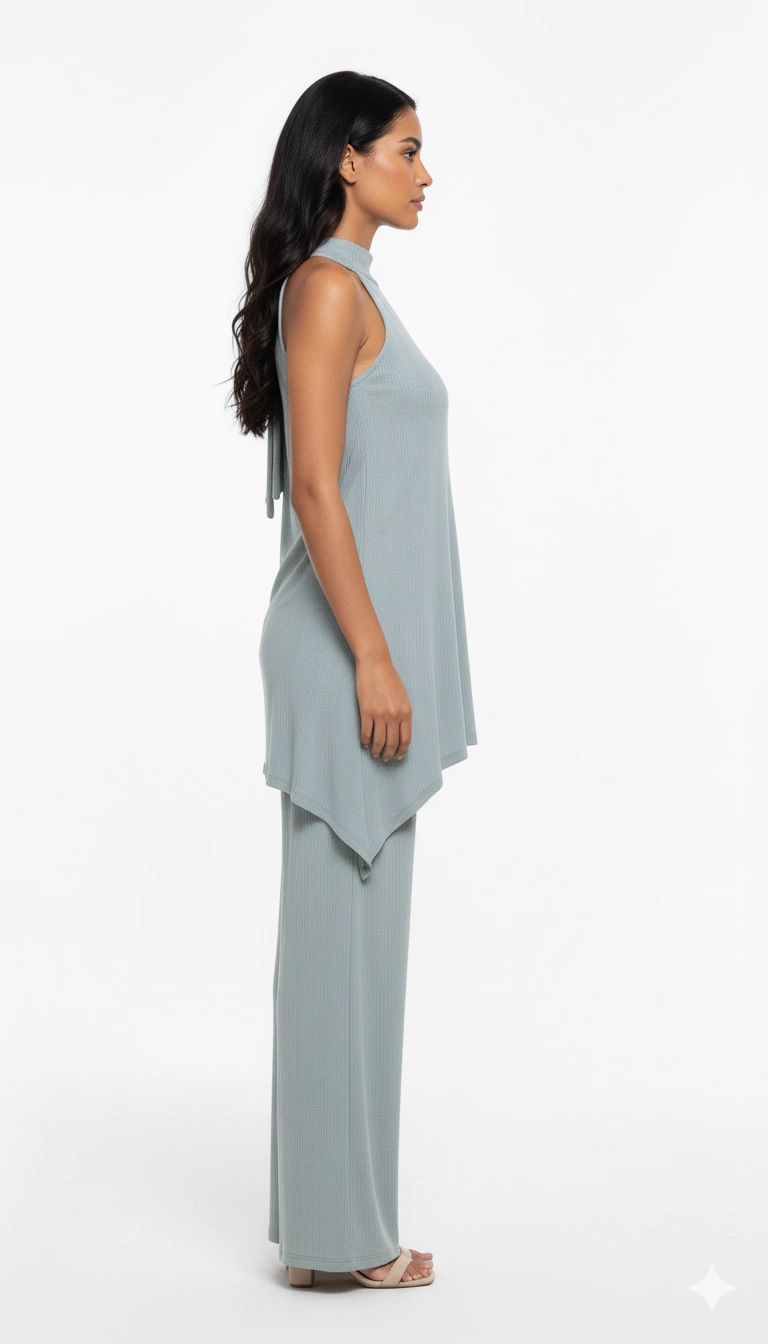 Encante-se com o Conjunto Isadora Set25, perfeito para quem busca um look sofisticado aliado à liberdade de movimento. Inspirado no estilo boho chic, este conjunto é composto por uma blusa gola alta com faixa para laço na nuca, que traz um toque delicado e feminino ao visual.